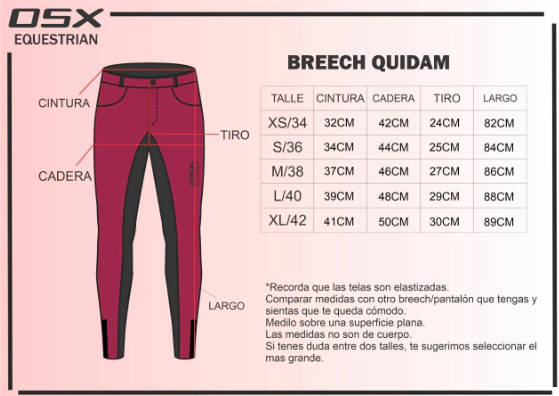 Breech marca OSX de tela elastizada y grip en la rodilla. Industria Nacional.