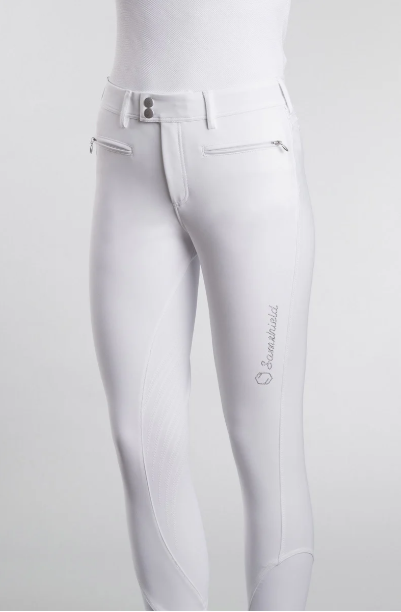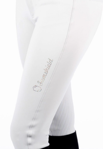 Adornados con el logotipo de Samshield en cristales de Swarovski en el muslo y tejido con cristales de Swarovski en el ribete del bolsillo, estos pantalones cuentan con parches de silicona en las rodillas y una banda interior de silicona en la cintura para mantener la camiseta de concurso firmemente en su lugar.