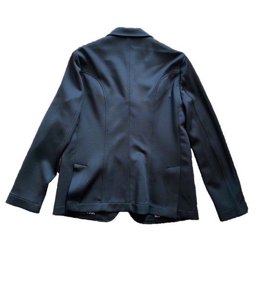 Saco Nacional marca Caballos. Tela elastizada y con un terminado semi brilloso. Color negro.