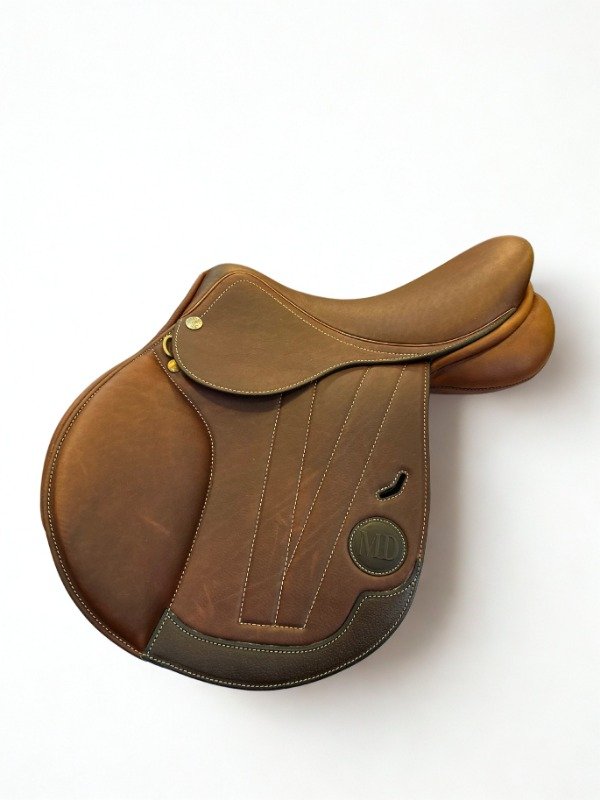 Montura sillería UCHA confeccionada en cuero pull up engrasado. Logra un mayor agarre y grip al jinete. Basto de pelo. Disponible en HB (chocolate) y oak . Tamaños 16.5´´, 17´´, 17.5´´, 18´´.