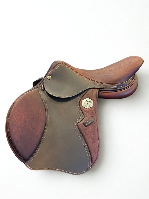 Montura sillería Saint Lourdes confeccionada en cuero pull up engrasado. Logra un mayor agarre y grip al jinete. Basto de goma inyectada. Rodillera con alto volumen de relleno. Disponible en HB (chocolate), oak y negro. Tamaños 16.5´´, 17´´, 17.5´´, 18´´.