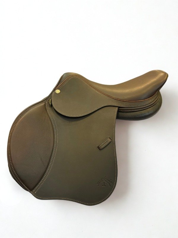 Montura sillería Saint Lourdes confeccionada en cuero pull up engrasado. Logra un mayor agarre y grip al jinete. Basto de goma inyectada. Disponible en HB (chocolate), oak y negro. Tamaños 16.5´´, 17´´, 17.5´´, 18´´.