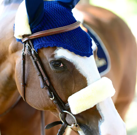 Cubre muserola de cordero, cierre con velcro, para colocar fácil y rápido. Se puede lavar y reutilizar. Incluye 1 unidad.